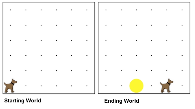 Imagine you have Karel starting in the world on the left: in the bottom left corner, facing east. You want to get Karel to the world on the right. What would be the code that you write?